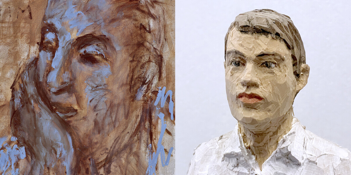 Abbildungen: Helga Marten _ Pablo Neruda _ (Ausschnitt) _ WVM 2873 _ Öl auf Leinwand _ 40 × 40 cm _ 2024 | Stephan Balkenhol _ Civis, Parlamentum _ (Detail) _ Wawa-Holz, farbig gefasst _ 178 × 113 cm _ 2017