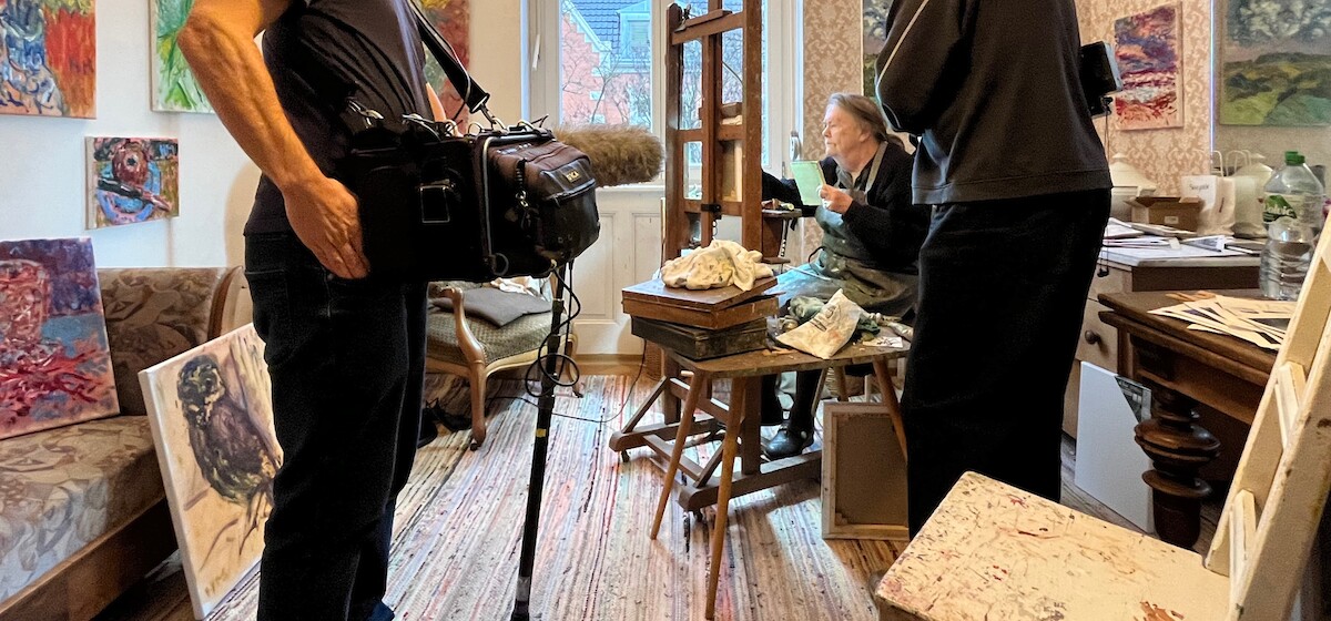 DIe Malerin Helga Marten während der Dreharbeiten in ihrem Atelier (U. Claeys)